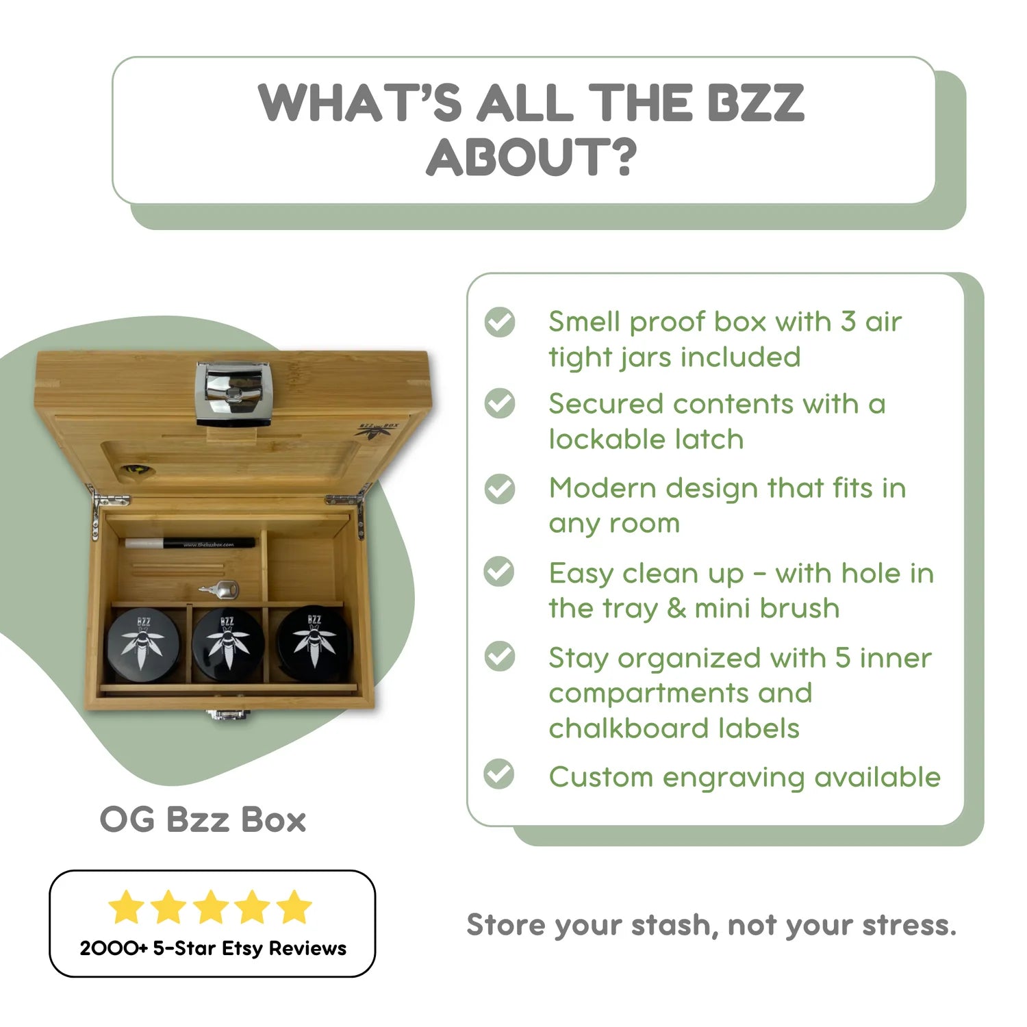 My friends and I rented a cottage for the May long weekend. Pulling out our stash containers, we placed them on the coffee table. Individually, my stash container was sad—an old shoebox from a pair of loafers I’d bought years earlier. Set beside the other not-so-great stash boxes, it looked like a mix of school projects, lunch boxes, and Tupperware containers. That conversation around the coffee table sparked the inception of Bzz Box.